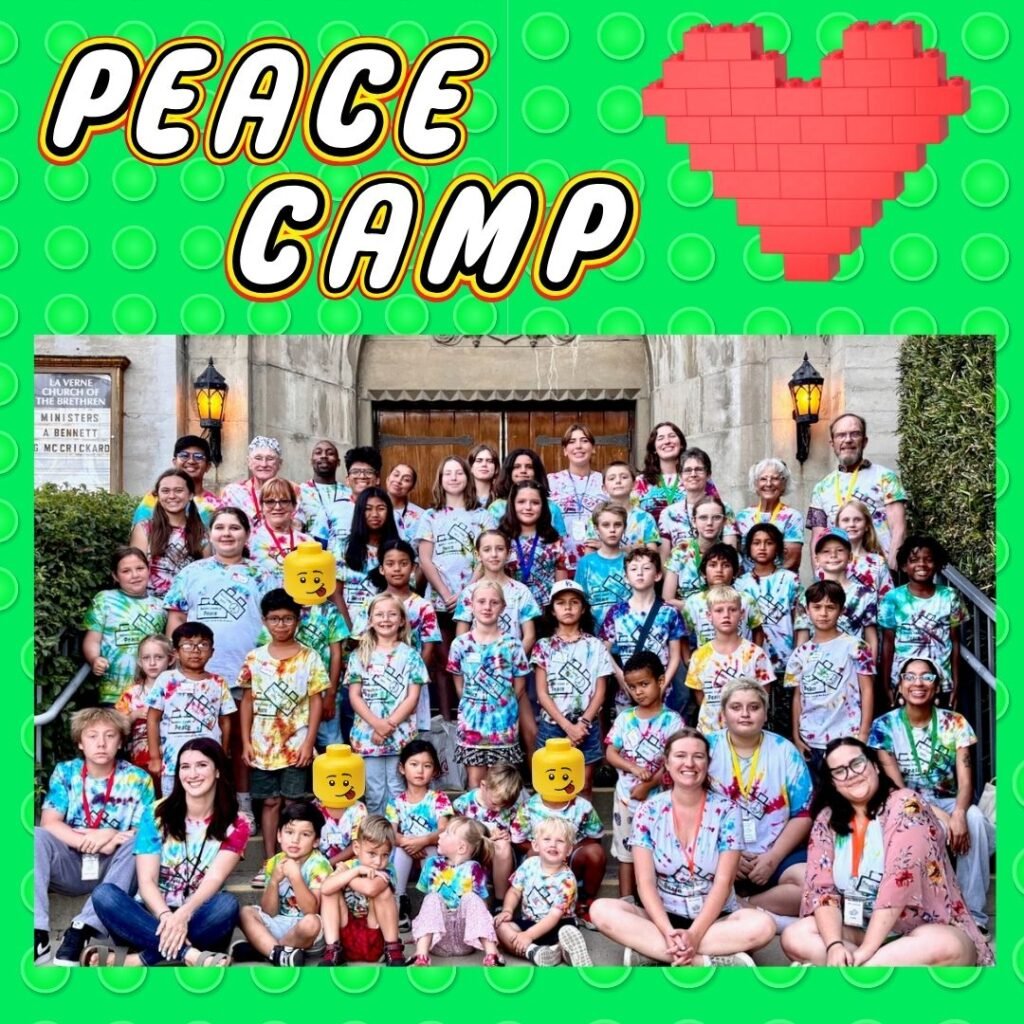 The La Verne Church of the Brethren sponsors a non-religious day camp, which takes place each July, designed for students entering Kindergarten – students entering 6th grade. Peace topics include non-violence, inner peace, global peace, advocacy, justice, and more. Students participate in hands-on activities such as planting in our community garden, cooking in our commercial kitchen, exploring open-ended art in our courtyard, working on tangible service projects for the community, and more. Peace Camp is a much-loved tradition and students in the community often come back to volunteer because of the lasting impact Peace Camp has had on their lives.