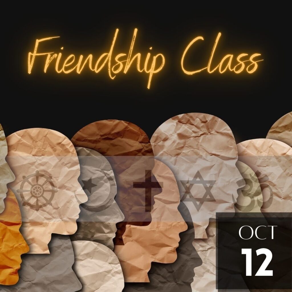 Everyone is welcome to the discussion. The class session begins with an introduction followed by a stimulating, fast-paced presentation on DVD and closes with a discussion of the video presentation and its messages. Friendship Class is a friendly environment for dialogue together!
